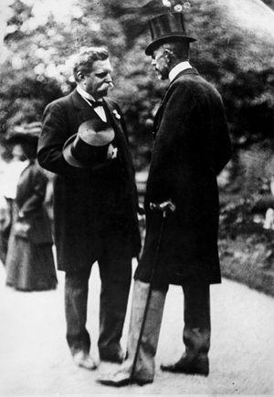 Med cylinderhatten vördigt i sin hand, konverserandes med sin gamla skolkamrat kungaparasiten V-gurra. Lika barn leka bäst...