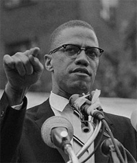 Malcolm X eller El-Hajj Malik El-Shabazz ( född Malcolm Little ) var en Amerikansk medborgarrättsaktivist, separatist och sektmedlem. Han började som småkriminell langare, torsk och inbrottstjuv i Harlem för att i finkan gå med i den helt skogstokiga sekten Nation of Islam (Black Muslims) som predikade svart nationalism, anti-semetism, rasism och separatism allt detta klätt i någon typ utav vettvillig målning utav Islam som bland annat menade på att den vita mannen var skapad utav en galen vetenskapsman. Malcolm blev snabbt en ledande gestalt inom sekten på grund utav hans enorma talang som talare och naturliga charm. Han blev rörelsens andra starkaste man och fick medlemsantalet att stiga i taket. Han bröt med sekten då han fått reda på att ledaren Elijah Muhammed legat runt med en hel drös utav sekreterare och gjort dem på tjocken för att sedan utesluta dom. Han startade sin egen rörelse Organization of Afro-American Unity och tog en lite mer sansad ton. Malcolm blev ihjälskjuten utav medlemmar ifrån Nation of Islam den 21 Februari 1965. Många menar på att Nation of Islam inte arbetade helt ensamma utan att dom kan ha haft hjälp ifrån både FBI och New York polisen som haft Malcolm under uppsikt en lång tid.